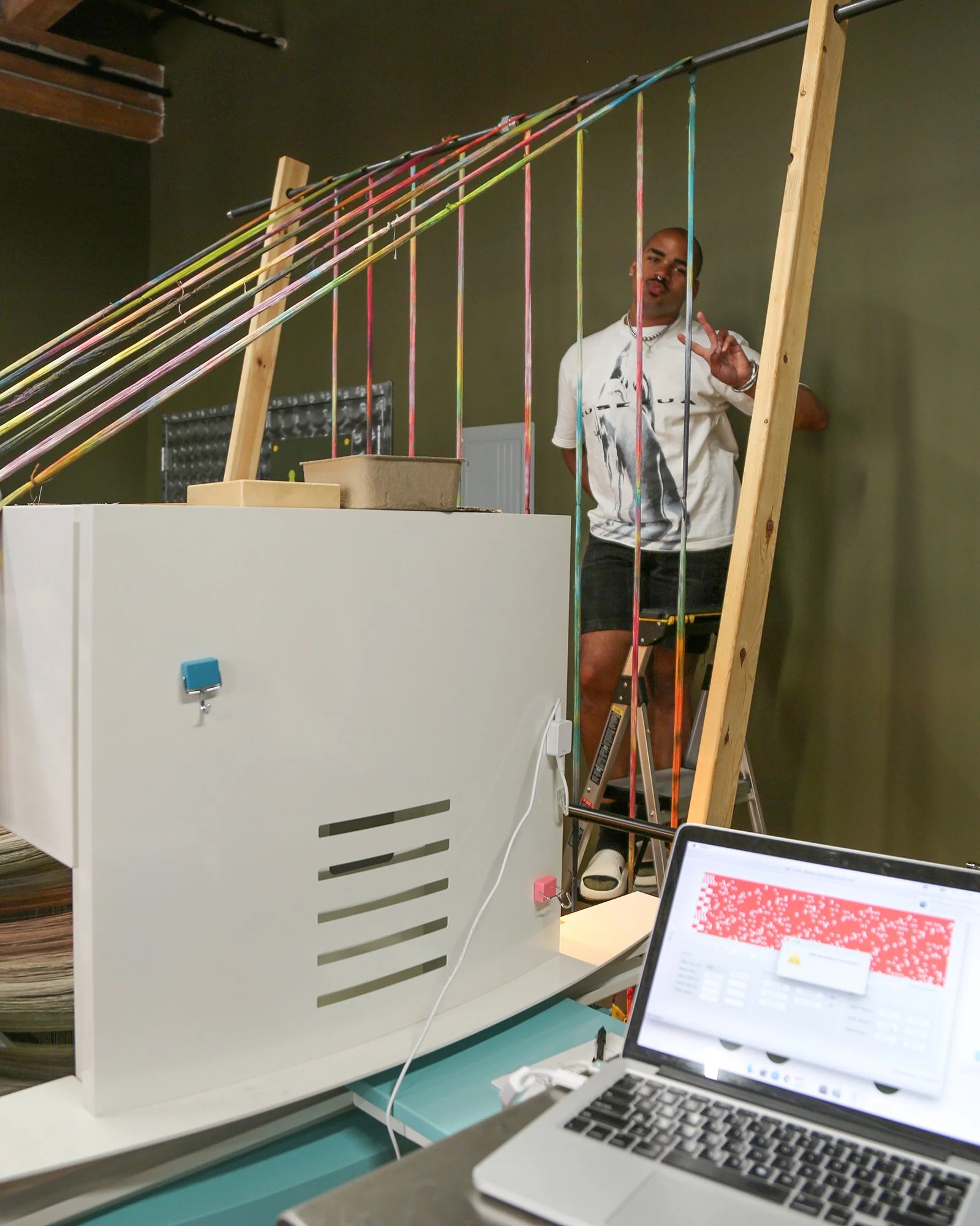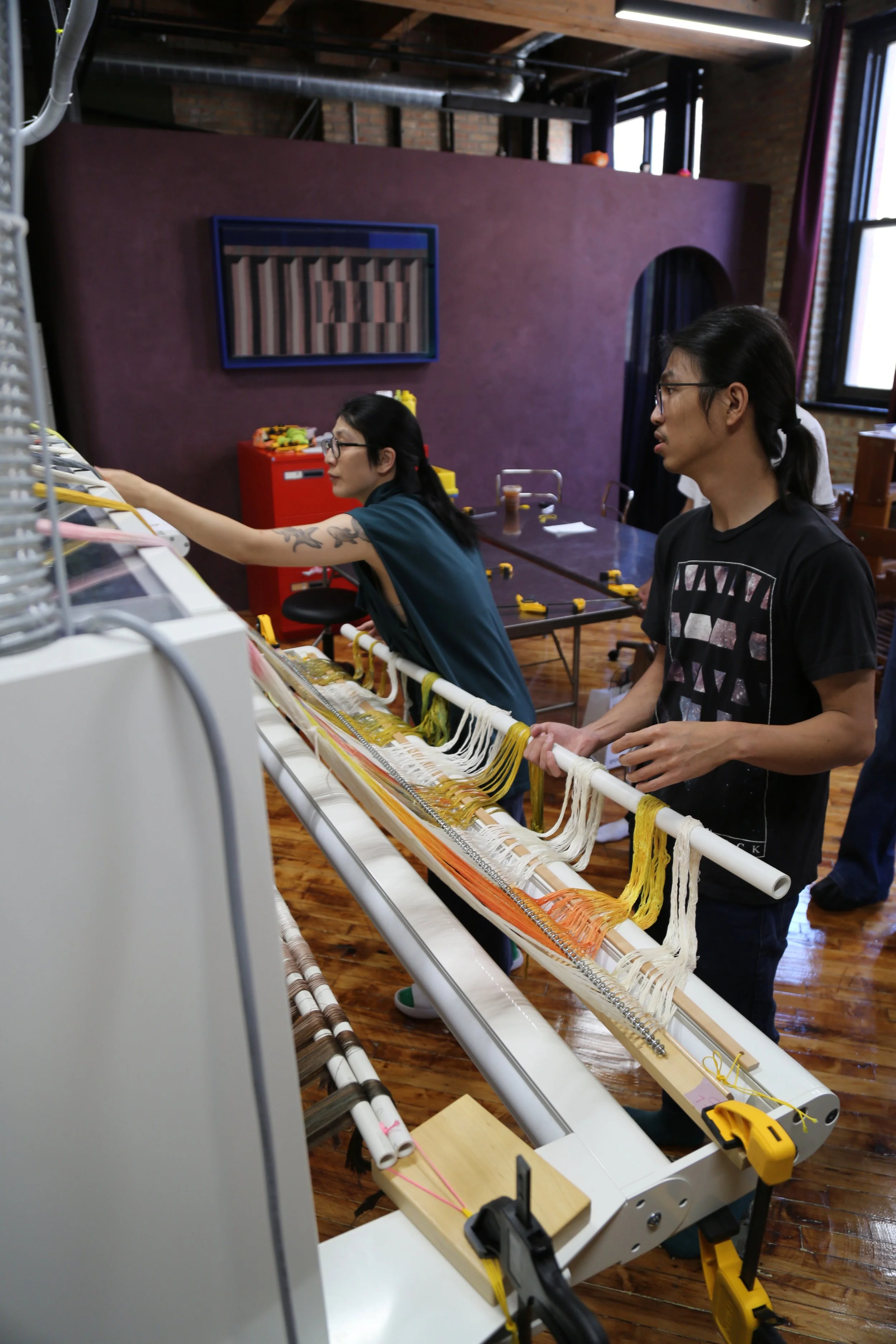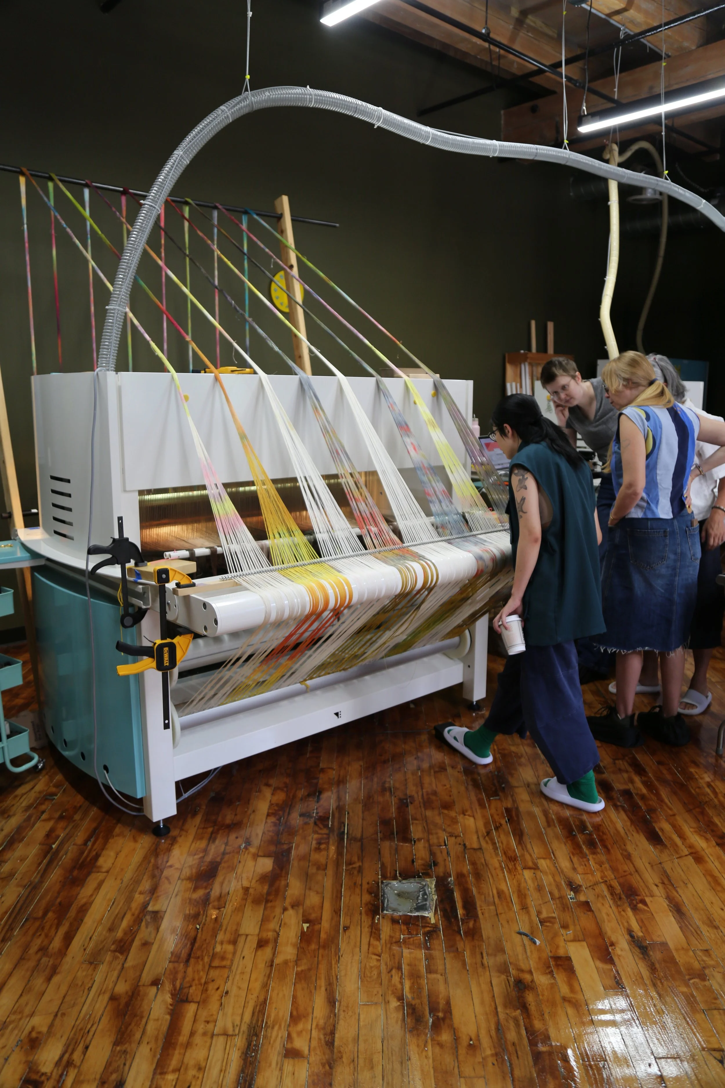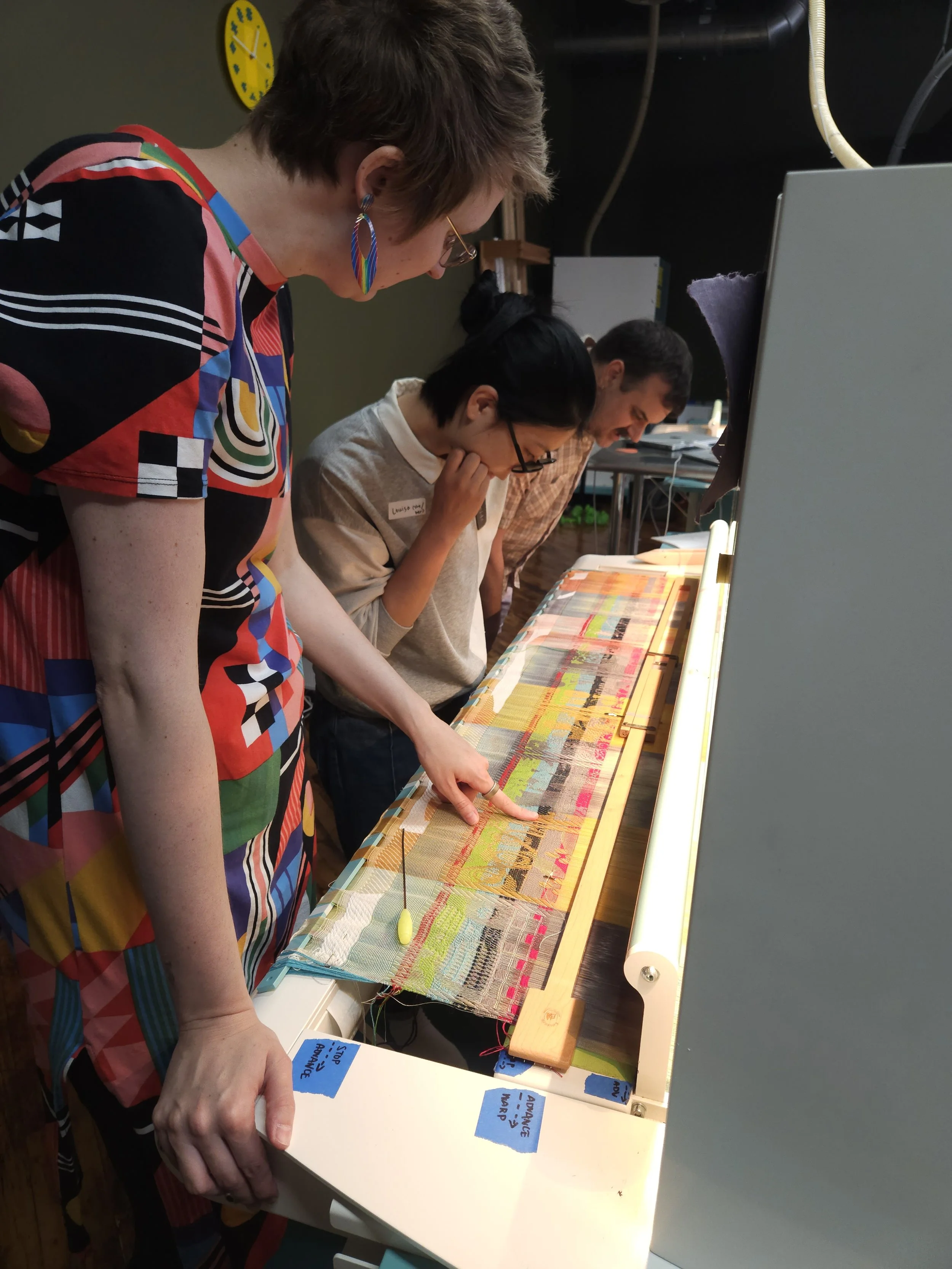 Abel spearheaded 10 minute weaving slots, where each individual wove a portion of the composite file of everyone’s samples. Many attendees with no prior experience went on to rent their own independent weaving sessions to expand on the ideas explored in this workshop!